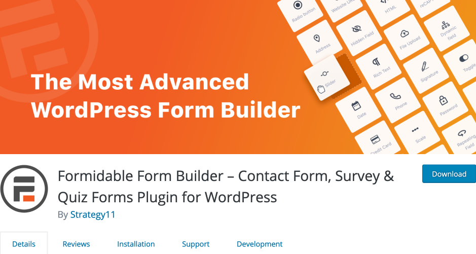 It’s a comprehensive form builder plugin that allows you to create advanced forms via drag and drop functionality.