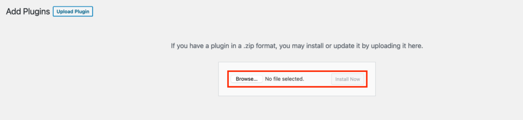 Click Browse, select the plugin’s ZIP file on your computer, and click the Install Now button to install the plugin on your website: