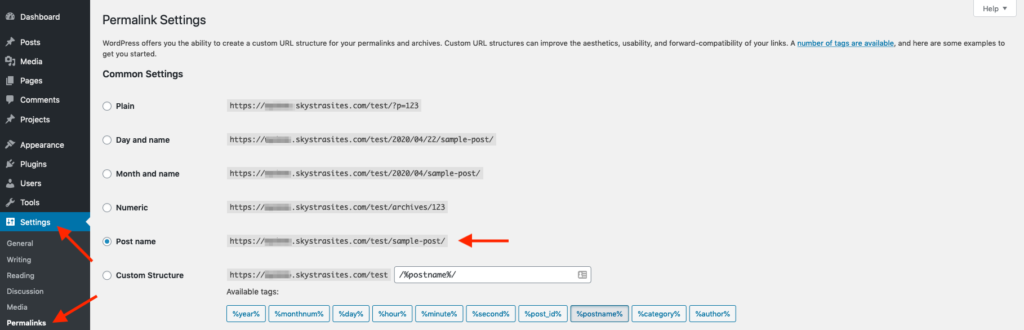 By using Post name, your post links will look like this: