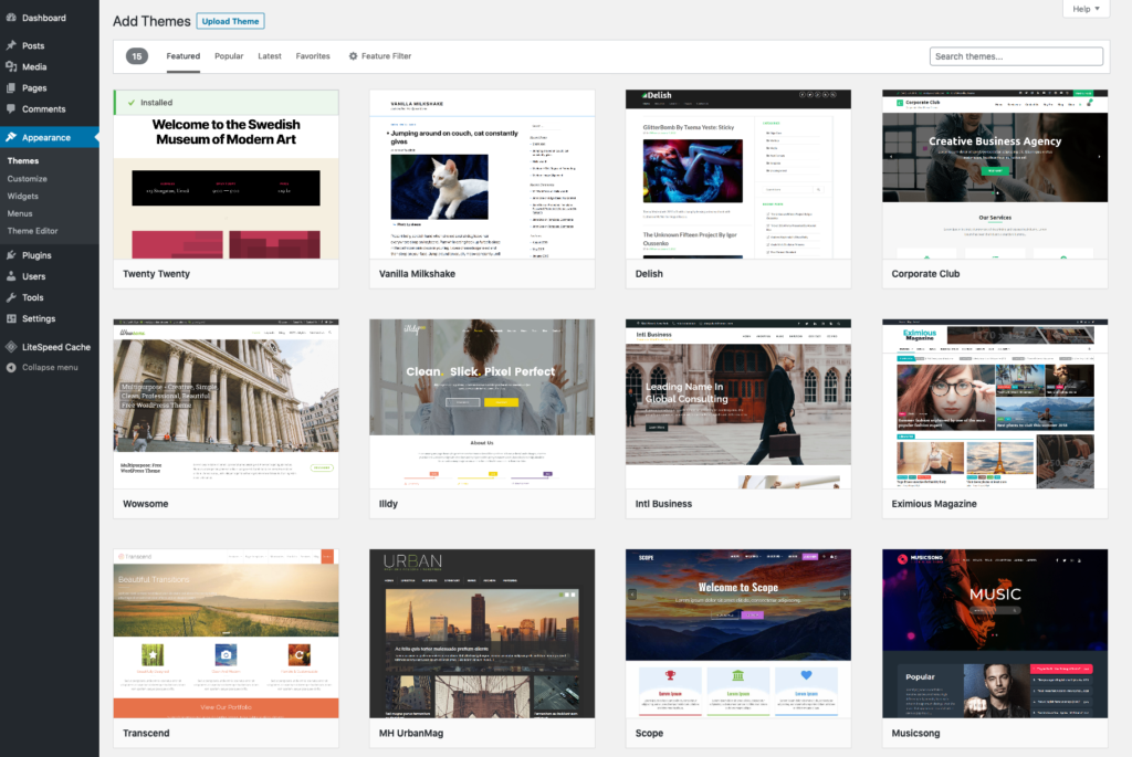 WordPress themes are like Wix templates, and by using them – you can change how your website looks. There are thousands of free and premium WordPress themes to choose from, depending on if you want a minimalist type of website or a heavy-duty feature-packed site.