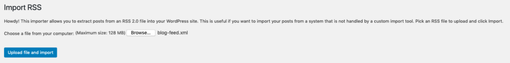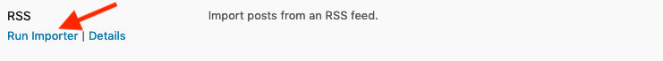 Once the RSS importer is installed, click the Run Importer button under it: