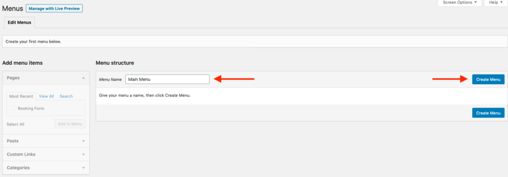 Step 5: Create menus on WordPress